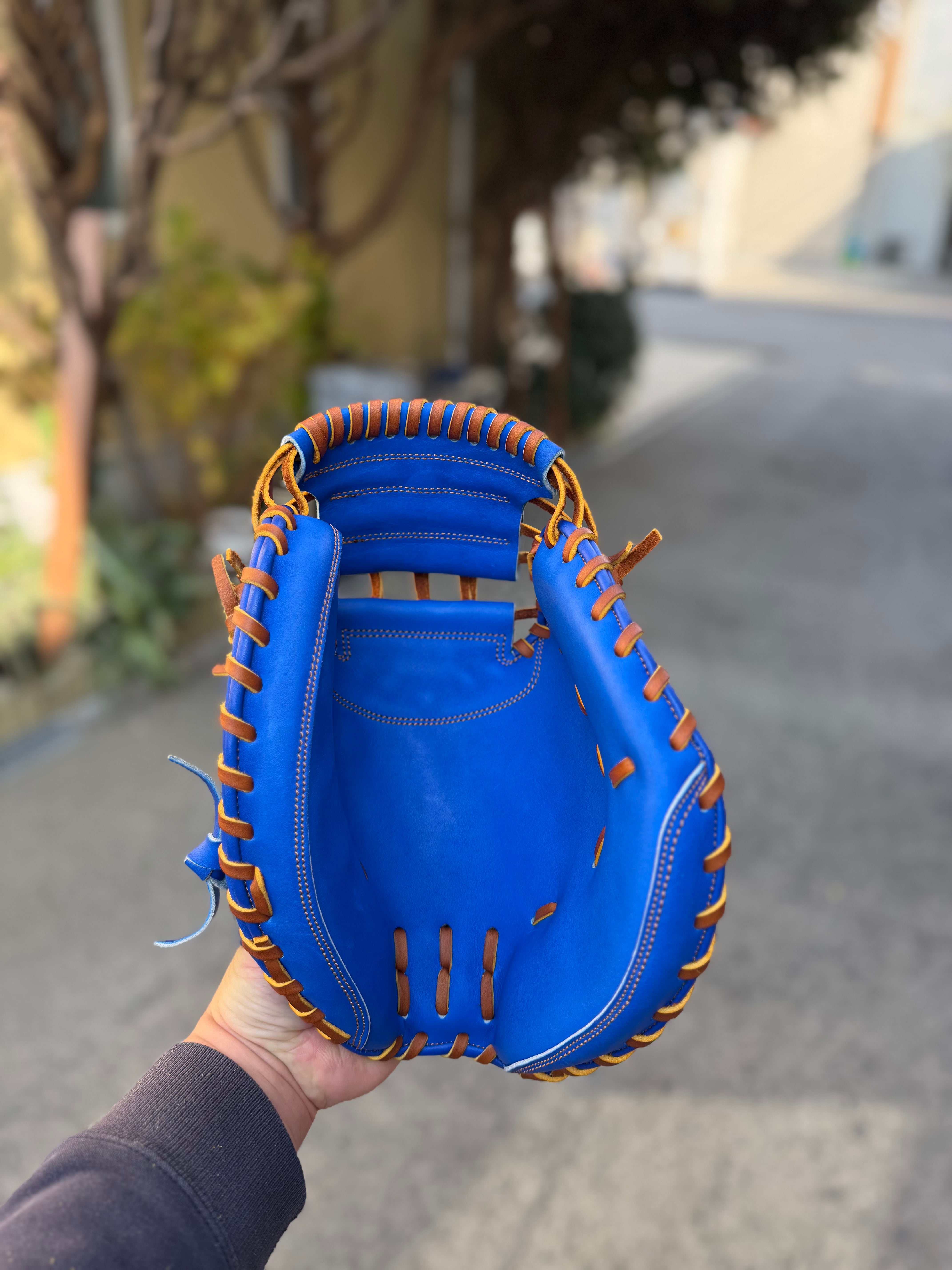 縫製・紐通し・仕上げの段階でバラツキのない安定したミットを製作しています。 特徴 ポケットの位置 ・音が鳴る仕組みはボールを捕球する際に接する面積が多い程いい音が鳴ると考えています。その為立体的にボールが入るポケットを作る必要があります。